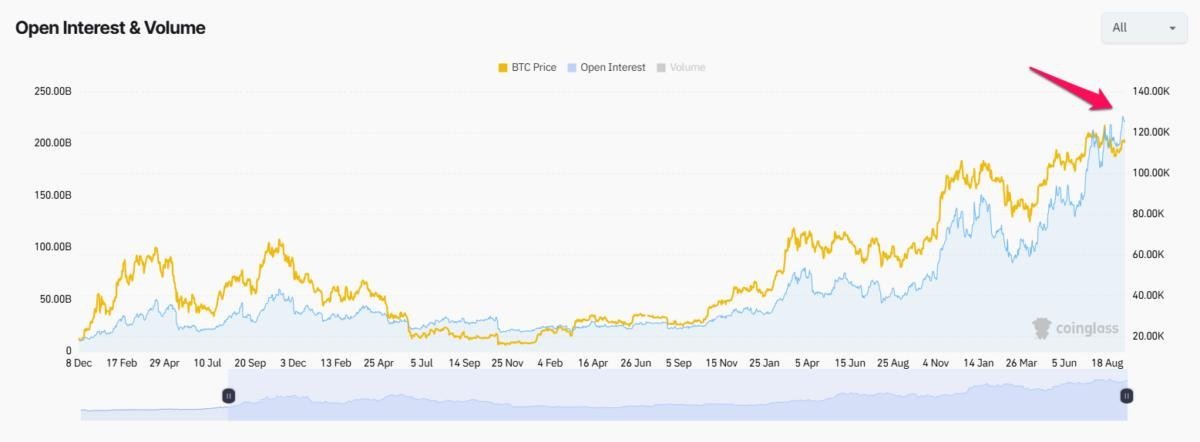 Рынок деривативов в сентябре перегревается Первая причина — рекордно высокий открытый интерес в сентябре. Этот показатель отражает общую стоимость открытых позиций и указывает на потенциальный риск ликвидации. По данным CoinGlass, общий открытый интерес по криптовалютным фьючерсам превысил $220 млрд, установив новый месячный рекорд. Краткосрочные трейдеры активно увеличивают кредитное плечо, наращивая позиции в ожидании экономических событий. Вторая причина — доминирование торговли деривативами над спотовой торговлей. Данные CoinGlass показывают, что соотношение объемов торгов Bitcoin Perpetual Futures к спотовым остается высоким, с объемами фьючерсов в 8-10 раз выше, чем спотовых. Эти данные указывают на возможность рекордных ликвидаций, особенно с приближением ключевых решений по процентным ставкам. Третья причина связана с неожиданной волатильностью, хотя многие трейдеры уверены, что знают, какое решение примет Федеральная резервная система. Пока продолжаются споры о том, как рынок отреагирует после заседания FOMC, аналитик Crypto Bully отметил в соцсети X (бывший «Твиттер»), что результат FOMC не определяет направление цены. Он скорее приносит волатильность, которая может привести к убыткам для длинных и коротких позиций, вызывая массовые ликвидации. CoinGlass сообщает, что кластеры позиций с высокой вероятностью ликвидации находятся выше и ниже текущего уровня цены биткоина. Большая активность в деривативах биткоина может привести к рекордным ликвидациям на рынке. Если BTC упадет до $104 500 в этом месяце, ликвидации по длинным позициям могут превысить $10 млрд. Если же BTC вырастет и достигнет нового максимума выше $124 000, короткие позиции могут потерять более $5,5 млрд.1 балл
