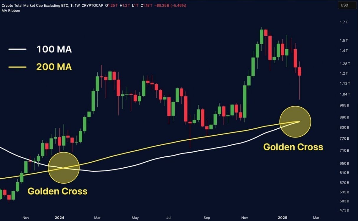 мнение из сети На недельном графике капитализации альты сформировался золотой крест На рынке криптовалют произошло событие, которое привлекло внимание аналитиков: недельные графики капитализации альткоинов сформировали «золотой крест». Данный паттерн часто сигнализирует о начале мощного бычьего тренда. Последний раз, когда такой сигнал появлялся, альткоины выросли на впечатляющие 95%, как отметил трейдер Merlijn The Trader. Однако не все так однозначно. Основатель Selini Capital Хорди Александер сомневается, что нас ждет привычный альтсезон. Он объясняет это отсутствием крупных источников ликвидности, которые могли бы поддержать рост рынка. Александер предупреждает, что в этот раз ситуация может сложиться иначе, и инвесторам стоит быть готовыми к неожиданностям.6 баллов