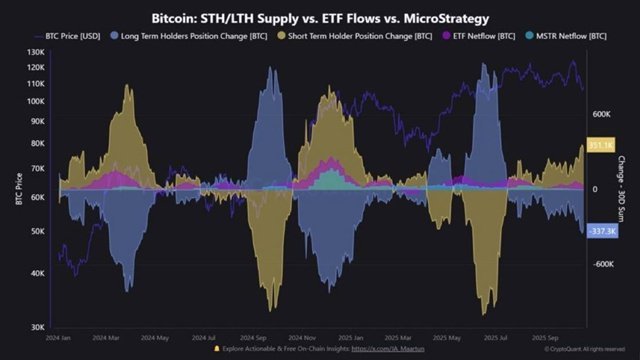 Коррекция завершилась? Долгосрочные холдеры продали 337 300 BTC за последние 30 дней — это крупнейший объём продаж за последние месяцы. Такие движения часто происходят на завершающих стадиях коррекции, когда старые игроки фиксируют прибыль, а новые участники готовятся к перехвату инициативы. Важно: объёмы переходят из слабых в сильные руки и именно такие фазы нередко становятся точкой разворота цикла.3 балла