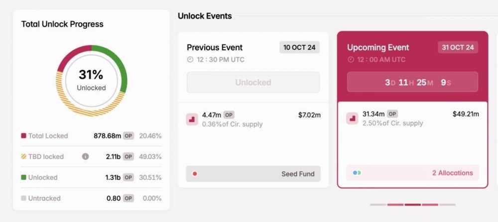 Рассказываем, какие токены будут разблокированы на предстоящей неделе, и как крупные разлоки могут повлиять на динамику рынка. Разлоком (англ. unlock) называется разблокировка токенов, которые до этого были заморожены по условиям инвестиционных раундов или иных программ привлечения финансирования. Обычно команда тщательно прорабатывает токеномику, чтобы не вызвать большого давления продавцов на различных этапах разлока и не обрушить тем самым цену токена. Тем не менее некоторые факторы, например, недостаток ликвидности или фиксация прибыли ранними инвесторами сразу после разблокировки токенов, могут серьезно ударить по котировкам актива. Celestia Дата разлока: 31 октября Количество разблокированных токенов: 175,59 млн TIA Циркулирующее предложение: 220,16 млн TIA 30 октября Celestia разблокирует 175,56 млн токенов TIA стоимостью $920 млн, что составляет почти 80% от текущего циркулирующего предложения. Такая масштабная разблокировка вызвала опасения по поводу возможного давления продаж. Optimism (OP) Дата разлока: 31 октября Количество разблокированных токенов: 31,34 млн OP Текущее циркулирующее предложение: 1,25 млрд OP Optimism — решение второго уровня, предназначенное для увеличения скорости работы и масштабируемости сети Ethereum. Согласно данным DefiLlama, он входит в число лидеров среди L2-сетей по числу запущенных протоколов и объему заблокированных средств (TVL). Токен OP используется для голосования, управления проектами в сообществе Optimism Collective и развития экосистемы. Высвобожденные в ходе следующего разлока монеты будут распределены между инвесторами и ключевыми участниками проекта. Sui (SUI) Дата разлока: 1 ноября Количество разблокированных токенов: 64,19 млн SUI Циркулирующее предложение: 186,58 млн EIGEN Sui — высокопроизводительный блокчейн первого уровня (L1). Работу и безопасность сети обеспечивает алгоритм консенсуса Proof-of-Stake. Проект разработан компанией Mysten Labs — ее основала в 2021 году группа бывших сотрудников Novi Research, которые отвечали за создание блокчейна Diem и языка программирования Move. С декабря 2021 года Mysten Labs привлекла $336 млн в ходе двух раундов финансирования. Среди основных инвесторов проекта числятся Binance Labs, Franklin Templeton и a16z Crypto. Ближайший разлок SUI произойдет 1 ноября. Часть «размороженных» токенов распределят между участниками инвестиционных раундов серии А и B, остальные же монеты отправят в резерв сообщества и казначейство Mysten Labs. Immutable IMXUSD Дата разлока: 1 ноября Количество разблокированных токенов: 32,47 млн IMX Текущее циркулирующее предложение: 1,63 млрд IMX Immutable X — решение второго уровня (L2) для масштабирования NFT на блокчейне Ethereum. В сентябре 2021 года проект всего за час привлек $12,5 млн в рамках токенсейла IMX на платформе CoinList, затем — закрыл инвестраунд в размере $60 млн, а в марте 2022 года получил еще $200 млн от ParaFi Capital, Declaration Partners, Tencent Holdings и других компаний. 1 ноября циркулирующее предложение IMX увеличится на 32,47 млн токенов. Разблокированные монеты будут направлены на развитие проекта и экосистемы Immutable. ZetaChain (ZETA) Дата разлока: 1 ноября Количество разблокированных токенов: 53,89 млн ZETA Текущее циркулирующее предложение: 459,59 млн ZETA ZetaChain — децентрализованная блокчейн-платформа, которая обеспечивает беспрепятственное взаимодействие между и сетями. Она позволяет обмениваться токенами и данными между различными блокчейнами, такими как Ethereum и Binance Smart Chain. 1 ноября про