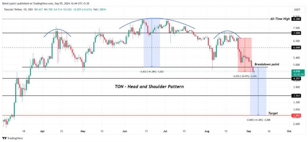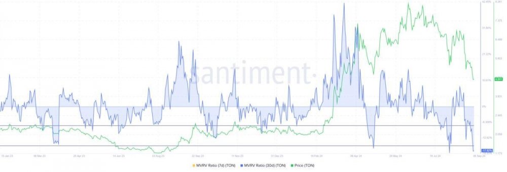 В последние две недели Toncoin (TON) потерял практически 30% от своей стоимости. Но есть и хорошая сторона: во время этой просадки пришло много новых инвесторов, которые с радостью откупают криптовалюту на дне Разбираемся, чего ждать от Toncoin (TON) в ближайшие дни и есть ли риски дальнейшего падения. Рассказали, на какие биржи криптовалют с выводом денег на карту стоит обратить внимание. Неожиданные спасители Toncoin Сейчас новые инвесторы активно входят в позиции по Toncoin, пользуясь текущей просадкой. Кроме того, доля краткосрочных держателей тоже значительно увеличилась за короткий период — с 23% до 33%. Традиционно увеличение числа таких ходлеров считается за медвежий сигнал, но в этот раз ситуация иная. Скорее всего, эти инвесторы закупаются TON по сниженной цене не для того, чтобы быстро распродать свои активы, а в надежде на будущий рост цены. Соотношение рыночной стоимости к реализованной стоимости (MVRV), которое показывает прибыли и убытки инвесторов, также подтверждает этот тезис. Сейчас индикатор находится на отметке -17%. Обычно отрицательные значения сигнализируют о том, что многие держатели несут убытки. что говорит о том, что многие держатели несут убытки. Но они также могут намекать на окончание периода продаж, так как инвесторы редко хотят продавать в убыток. Значения MVRV сейчас вышли за пределы «зоны возможностей», которая находится между -7% и -15%. Это может означать, что Toncoin находится в зоне, где инвесторы активно покупают. Увеличение спроса — позитивный фактор, который помогает цене восстанавливаться. Особенно позитивным для TON этот расклад будет в том случае, если продавцы начнут отступать, уступая место быкам. Какие еще Телеграм-монеты могут столкнуться с трудностями на фоне ареста Павла Дурова, уже рассказали в специальном материале. Прогноз Toncoin: просадка или разворот На момент написания этого анализа TON торгуется по $4,67, за сутки не показав никакой ярко выраженной динамики. При этом за последние 14 дней криптовалюта потеряла в цене 29%. На графике ниже видно, что цена формирует паттерн «голова и плечи» и приближается к точке пробоя. Данный паттерн часто предвещает падение курса. Однако этот сценарий в теории можно оспорить: текущие рыночные условия и активность покупателей смогут помочь Toncoin развернуться. При благоприятном развитии событий TON имеет шансы отскочить от поддержки на $4,29 и попробовать восстановиться до $5,00. Однако в том случае, если токен утратит эту поддержку, его может ждать еще более глубокое падение. Так, стоимость Toncoin рискует снизиться на 41% и достичь $2,85. Тем не менее такое глубокое падение видится маловероятным. Более реалистичный из негативных сценариев — снижение до $3,55. Просадка до этого уровня хоть и отменит бычий тезис, но все же позволит избежать продолжения нисходящего тренда. Хотите стать частью большого и дружного сообщества BIC? Тогда подписывайтесь на нашу группу в «Телеграме» — там вас ждет общение с криптоэнтузиастами, помощь от наших экспертов и эксклюзивные комментарии опытных аналитиков.