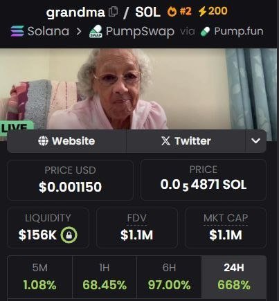 Бабуля создала токен GRANDMA на Solana и за сутки достигла миллионой капитализации