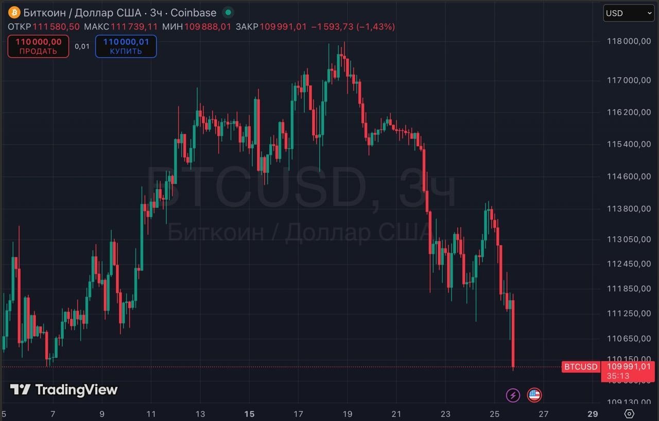 Биткоин пробил $110 000 вниз, эфир $3 900, SOL провалила $200. Почему падаем?