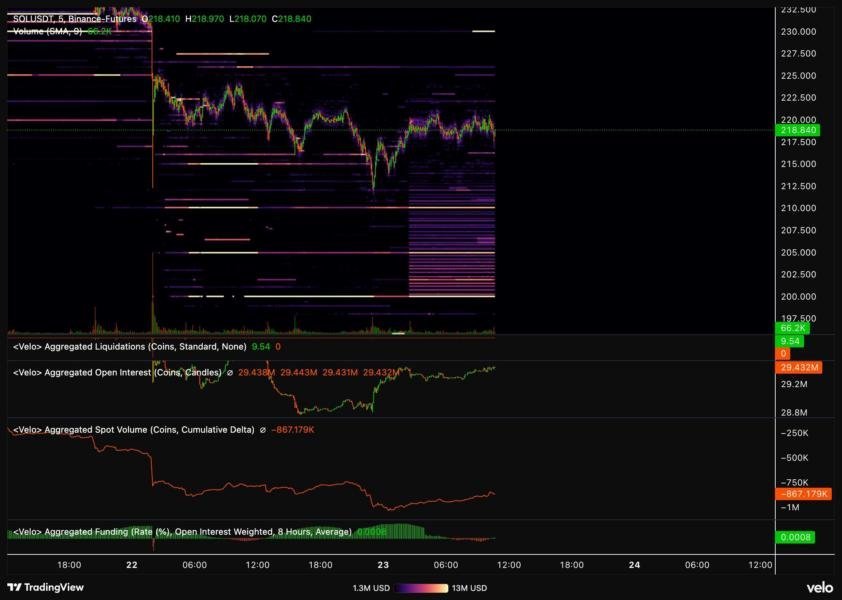 Другой трейдер заметил интересный сигнал на 12-часовом графике: «слоистые заявки» от области ~$200 и выше. Это может стать критическим порогом, который стоит наблюдать перед крупными входами в позиции. При текущих ценах SOL находится всего в $3 от этой зоны.