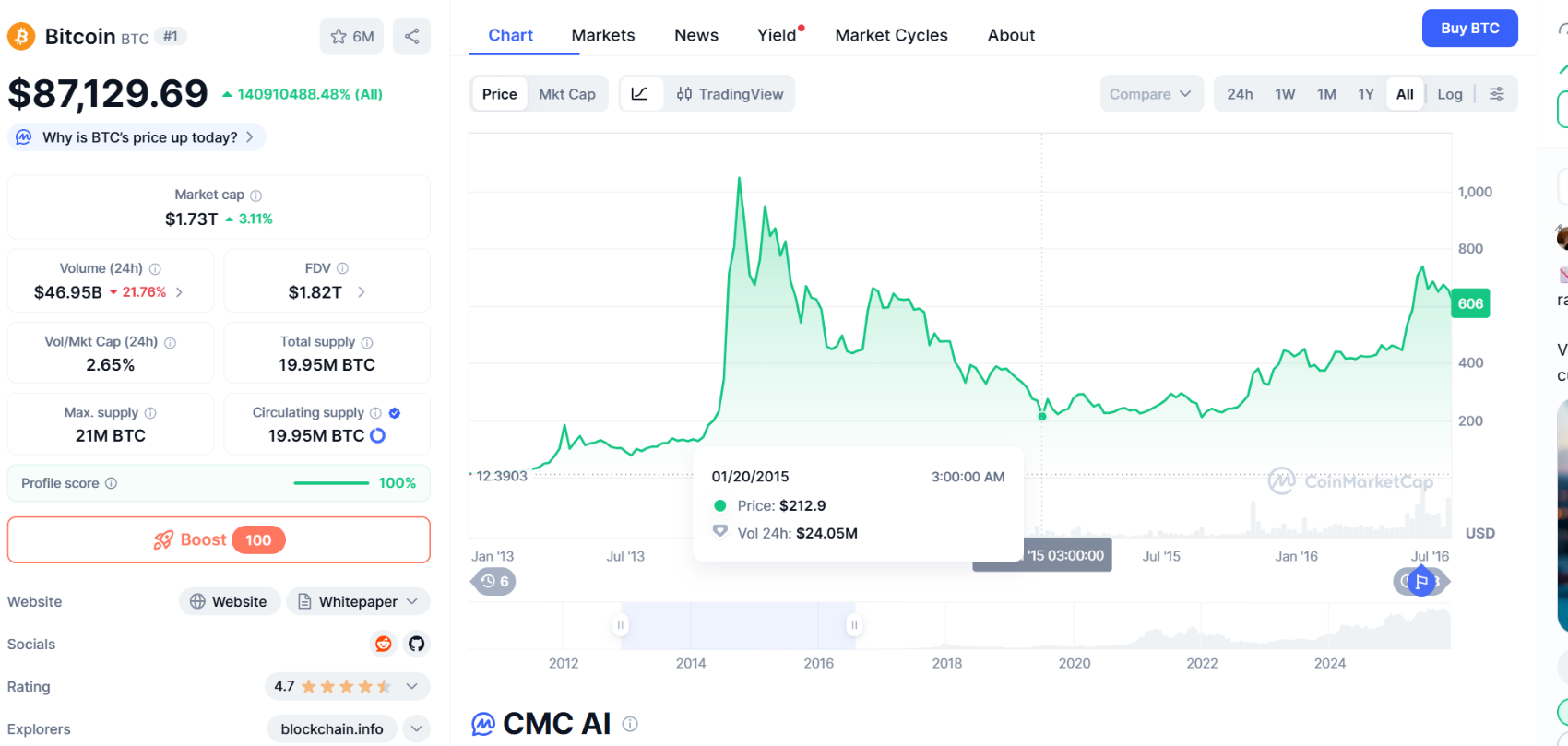 Vanyushick Опубликовано 24 ноября Поделиться Опубликовано 24 ноября 47 минут назад, m1xtape4ig сказал: Ты прикалываешься? У тебя 20.01.2025 на твоей отметке. Найди 15 января, что сложного то? Сузь еще временные рамки до года и всё поймешь А смысл? Я тебе показал на каком промежутке смотрел и что у меня не показывало то, что видел ты. На этом интервале показывал самый низ 20 числа и другую цену, 15 число там пропущено в интервалах. Значит это уже косяки coinmarketcap. Также я уже выше написал свое отношение к теме этого топика, что такие агрегированные графики не могут быть доказательством чего-либо. Ссылка на комментарий Поделиться на другие сайты Поделиться