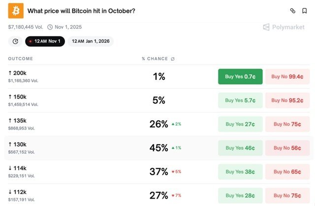 Пользователи для ставок Polymarket рассчитывают на рекорды Биткоина в октябре. По их версии, криптовалюта сможет взять уровень...