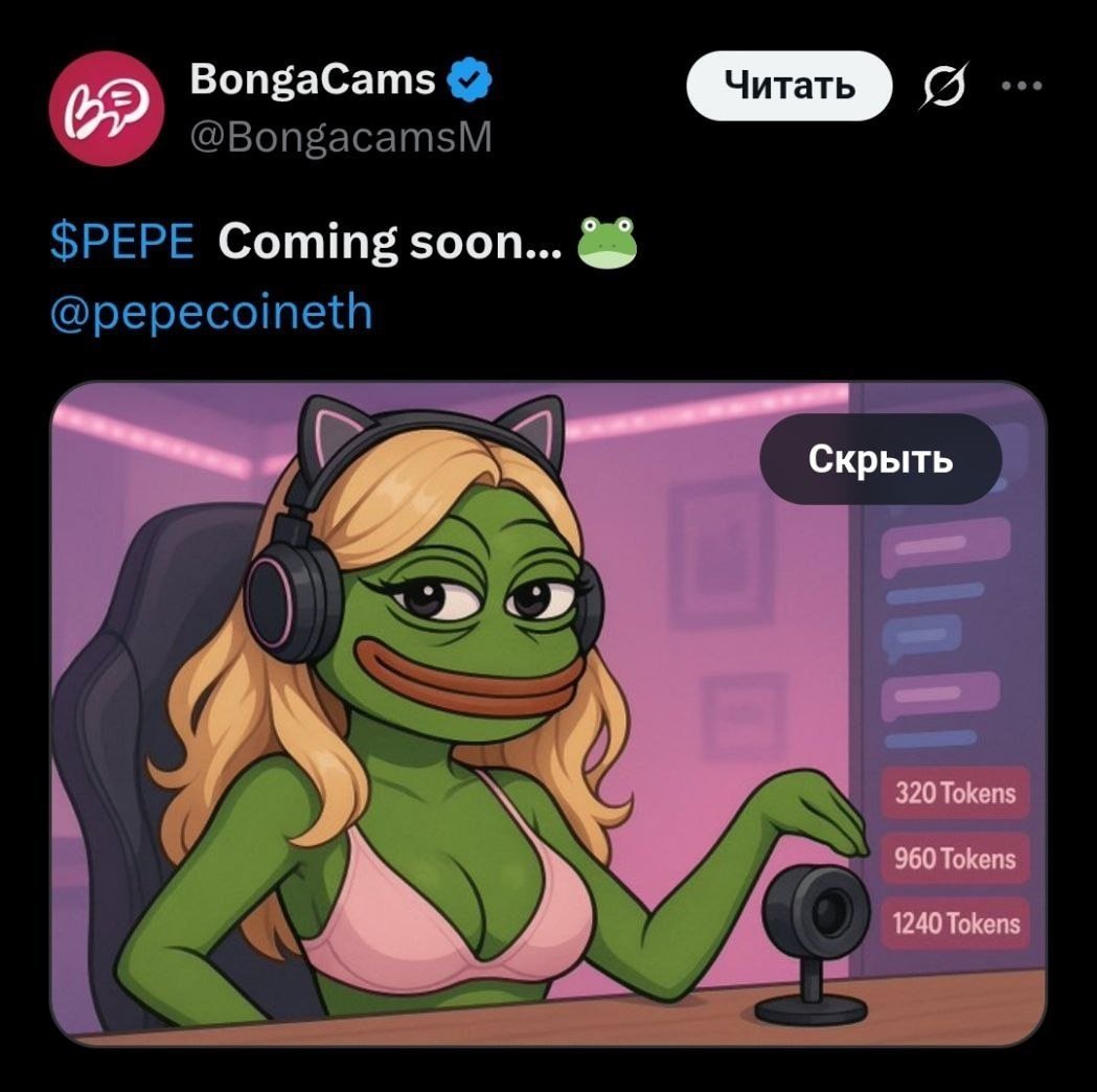 Cryziz Опубликовано 11 октября Поделиться Опубликовано 11 октября Вебкам BongaCams добавил поддержку мема PEPE к себе для оплаты — теперь пользователи могут отправлять чаевые и заказывать приватные шоу с помощью этой криптовалюты 1 Ссылка на комментарий Поделиться на другие сайты Поделиться