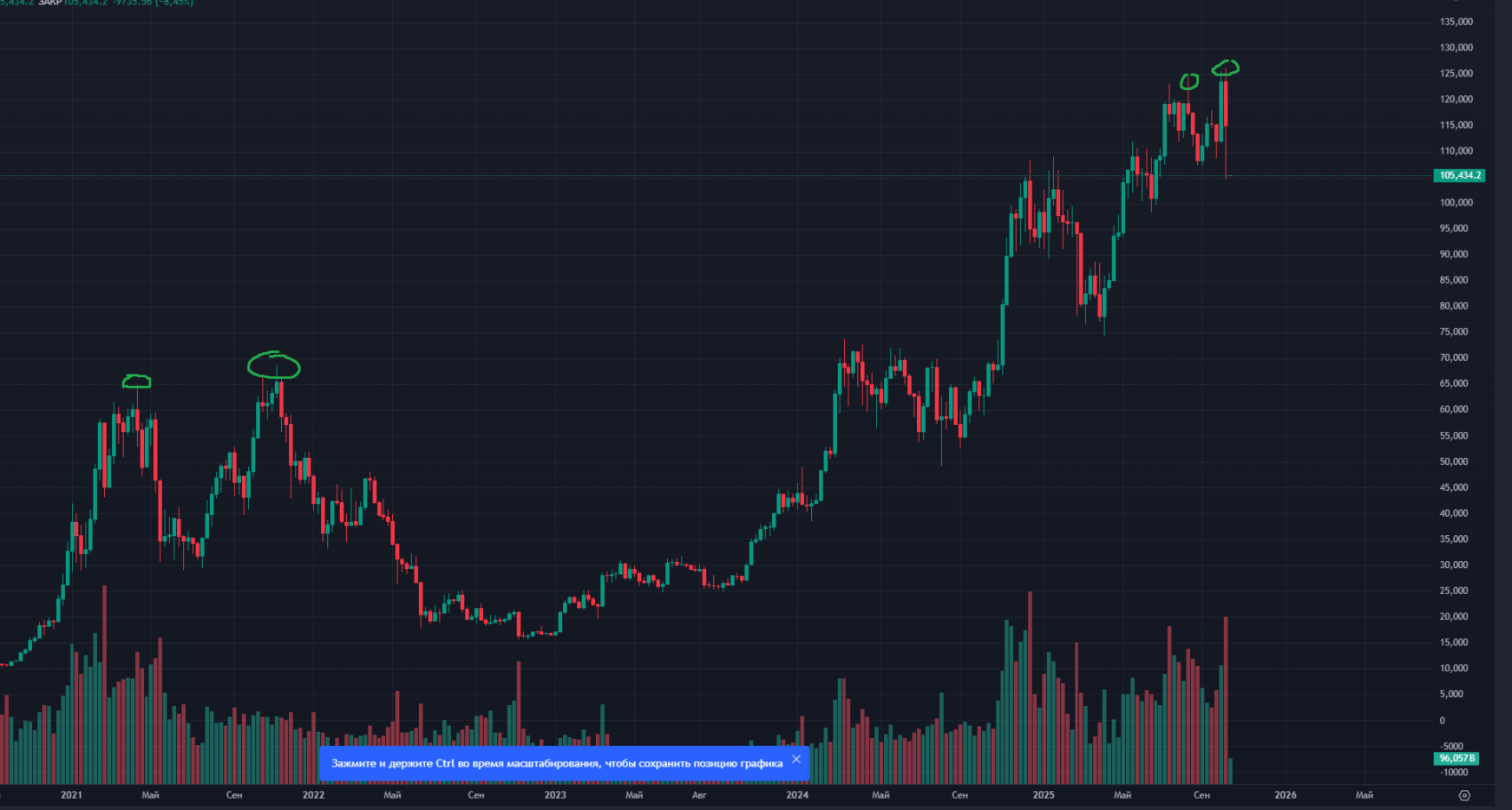 serega174 Опубликовано 17 октября Поделиться Опубликовано 17 октября вот если сравнивать с прошлым циклом. У прошлого был пик, сильный откат и после немного обновили ath и пошел спад. Сейчас что то похожее, только откат был намного меньше. Возможно это связанно с покупкой (институционалов, корпоратов и суверенов, которые постоянно покупают BTC) а возможно сейчас будет откат как в сентябре 2021 и в январе опять придем к пику и уже после переход наступит в криптозиму 1 Ссылка на комментарий Поделиться на другие сайты Поделиться