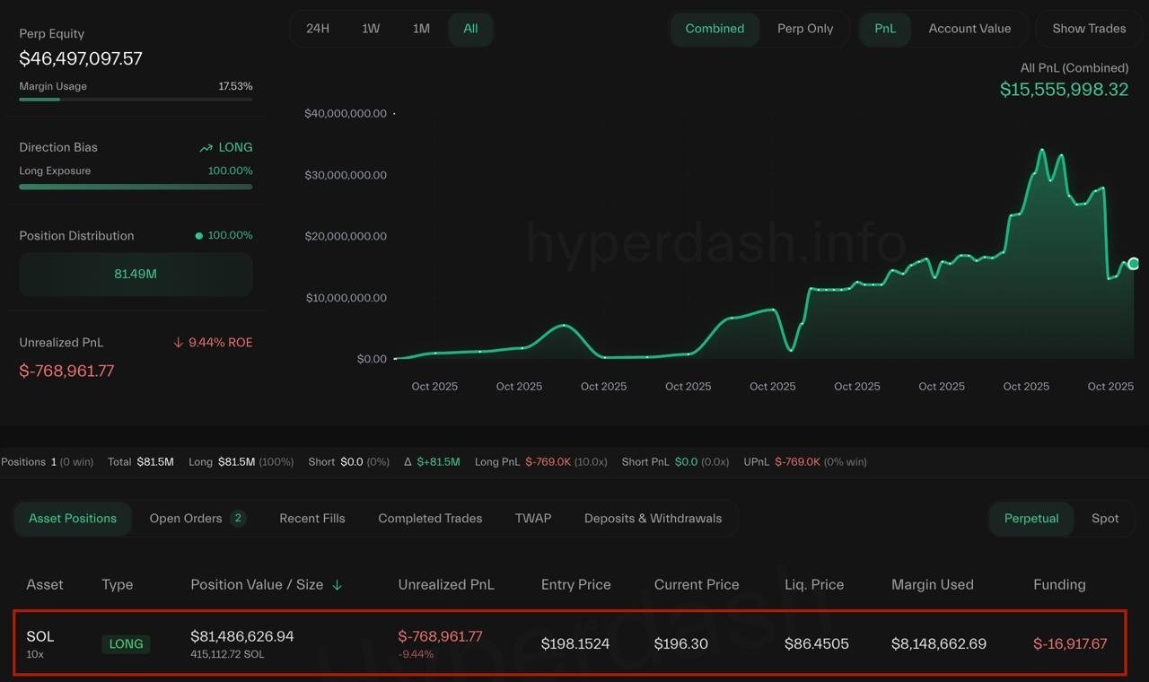 btcMan Опубликовано 29 октября Поделиться Опубликовано 29 октября Трейдер «0xc2a3» закрыл свой лонг по #ETH с 10х плечом с прибылью $1,630,000 При этом он продолжает наращивать лонг по #SOL c 10x плечом – сумма позиции уже превысила $81,000,000. Точка входа: $198.1542. Ликвидация: $86.4505. Ссылка на комментарий Поделиться на другие сайты Поделиться