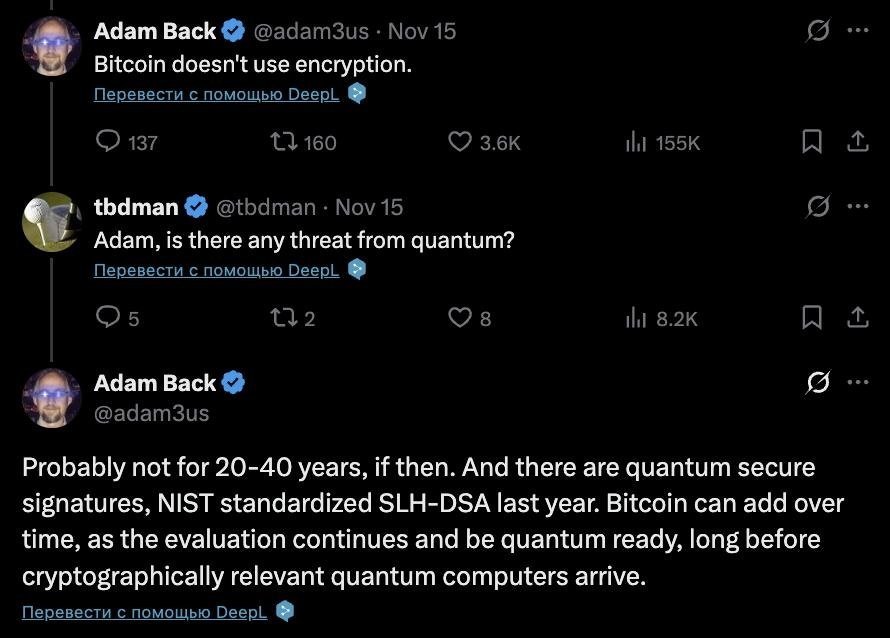 Он подчеркнул, что у сети Биткоина достаточно времени, чтобы перейти на новые методы защиты задолго до появления квантовых машин, способных реально угрожать криптографии.