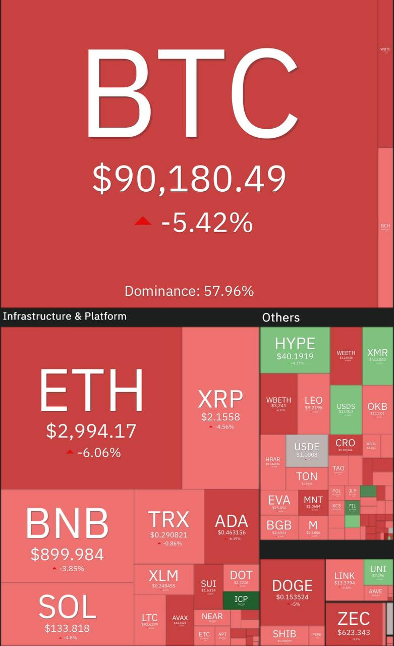 freeman Опубликовано 18 ноября Поделиться Опубликовано 18 ноября Биткоин упал ниже $90 000, эфир пробил $3000, альты сыпятся. Лидеры снижения среди топ-100: STRK -15%, PUMP -13%, DCR -13%. При этом ICP прибавил 16%, FIL +5%, HYPE +4%. Индекс страха и жадности 11. Еще ниже. Ссылка на комментарий Поделиться на другие сайты Поделиться