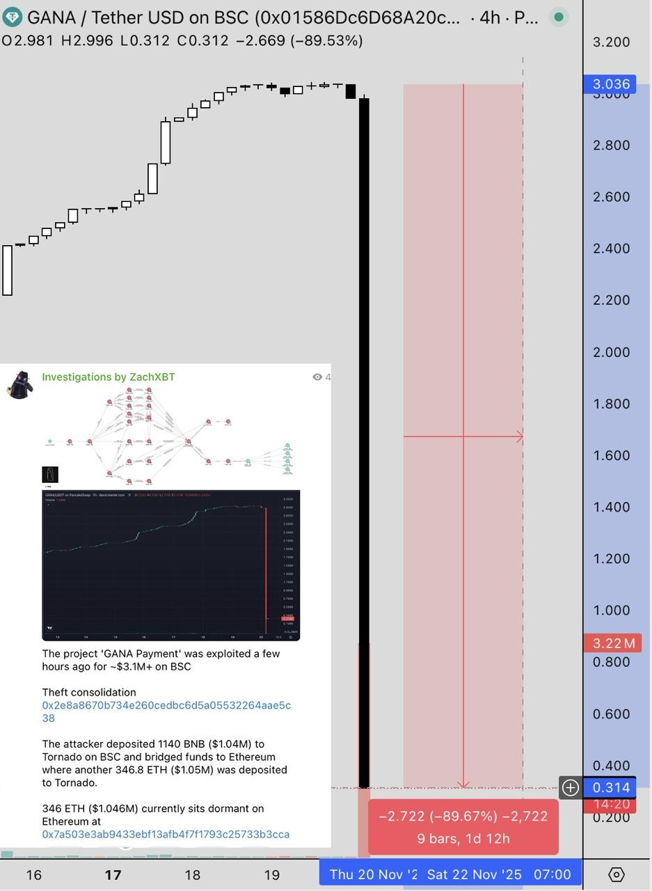 DozaPsixoza Опубликовано 20 ноября Поделиться Опубликовано 20 ноября Проект GANA Payment взломан на $3,1m (ZachXBT) #GANA -90% GANA Payment – платежный WEB3-проект на BNB Chain, который строит инфраструктуру для мгновенных криптоплатежей и DeFi-сервисов Ссылка на комментарий Поделиться на другие сайты Поделиться