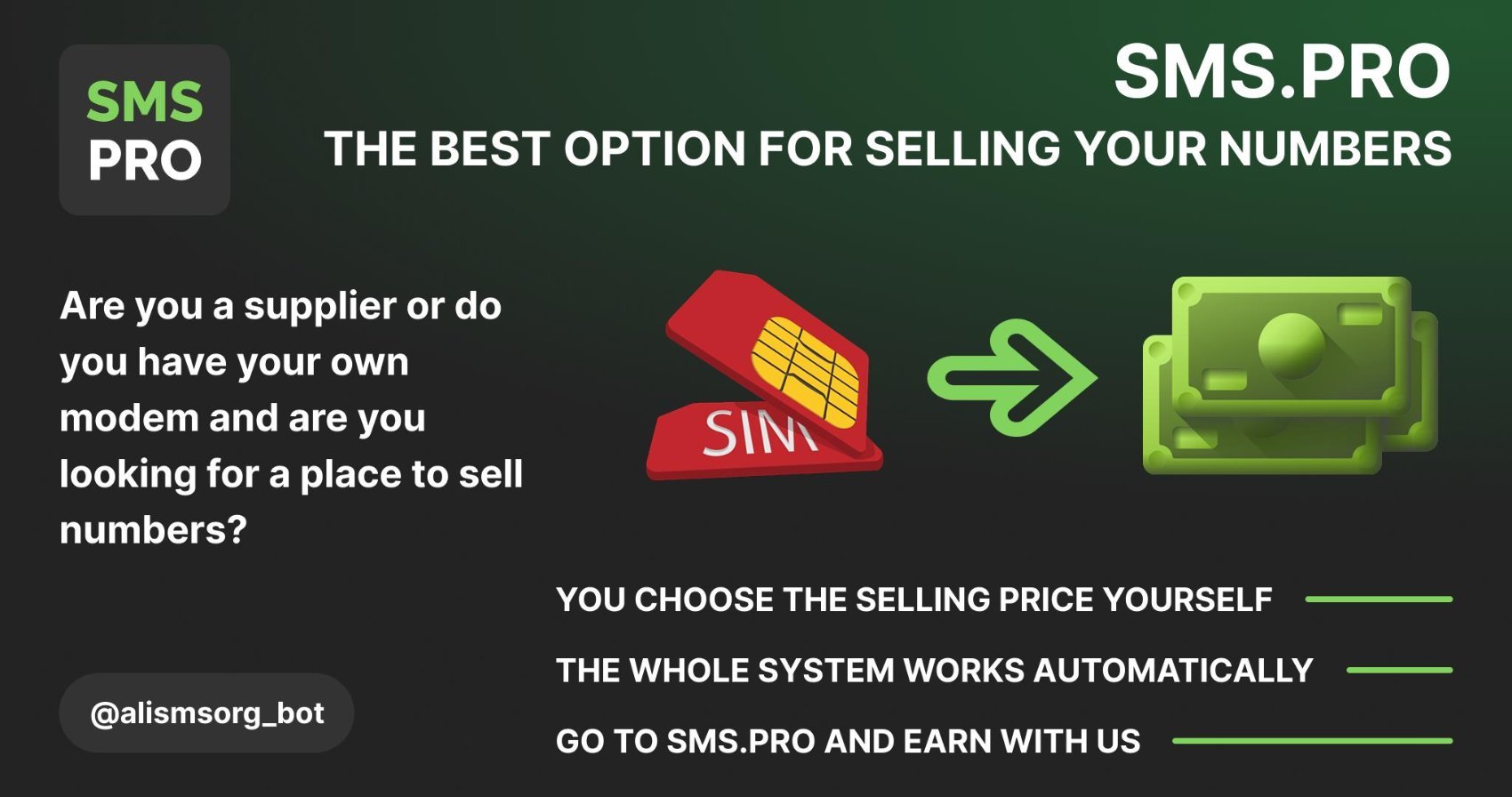 ALISMS Опубликовано 6 января Поделиться Опубликовано 6 января Привет ️ Вы являетесь поставщиком или у вас есть собственный модем и вы ищете место для продажи номеров? SMS.PRO - лучший вариант для продажи твоих номеров Сам выбираешь цену продажи Выбор продажи: общий (всем) или приватный (ты сам выбираешь, кому ты будешь продавать) Вся система работает автоматически Максимально просто подключение Заходите на SMS.PRO и зарабатывайте с нами Техническая Поддержка @alismsorg_bot Ссылка на комментарий Поделиться на другие сайты Поделиться
